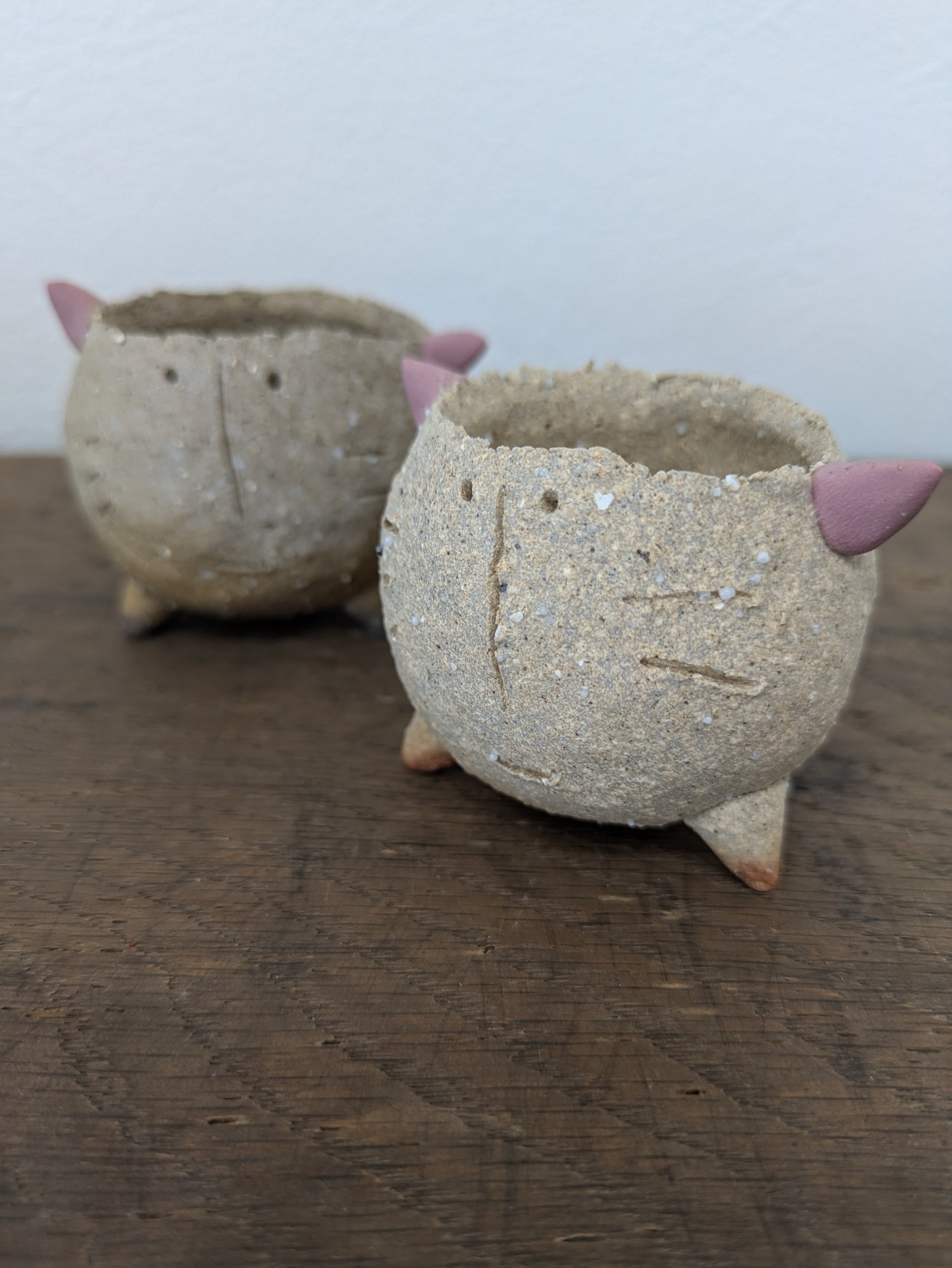 ♡両面に顔!ネコの植木鉢♡ピンク系♡